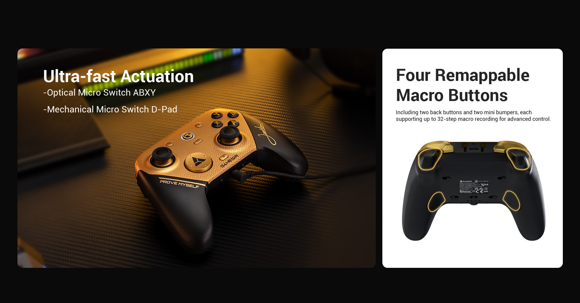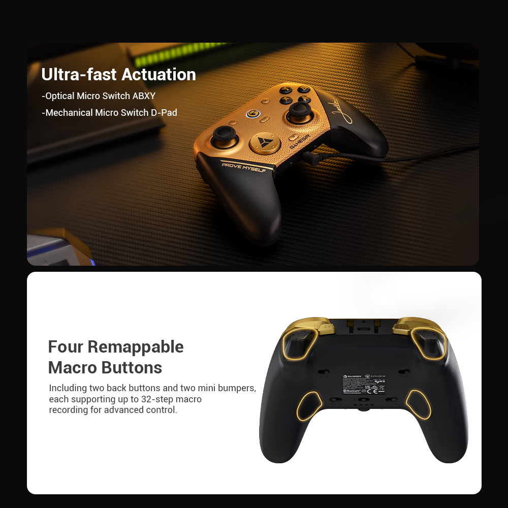Including two lockable back buttons and two mini bumpers, each supporting up to 32-step macro recording, giving gamers advanced customization and faster in-game execution.