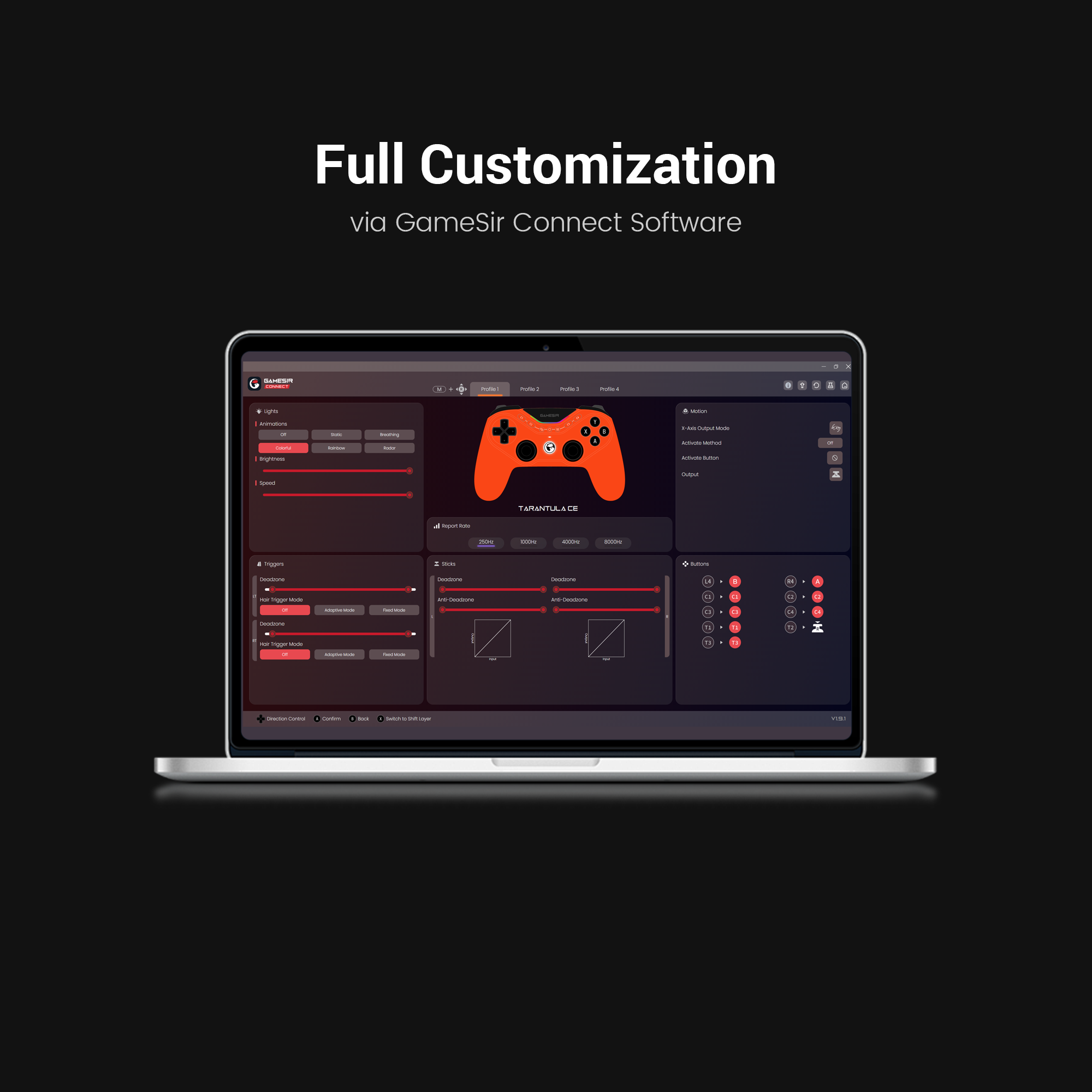Dynamic RGB Lighting offers vibrant, customizable color effects with smooth transitions and various modes to enhance mood and gaming immersion. - Esports-Grade Customization via GameSir Connect Software
