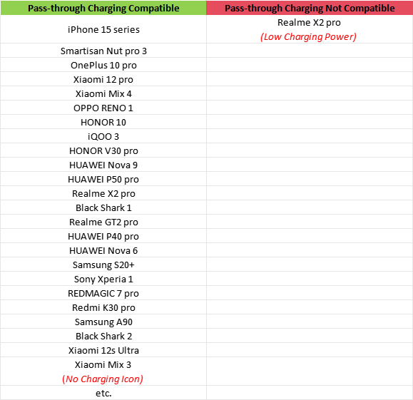 Yes, but not all phones are supported. Below is a brief list of compatible & incompatible phones as a quick reference. Please be noted that the list isn’t exhaustive due to numerous phones in the market and our limited ability to test all phones. Other phones may or may not work for pass-through charging on G8 Galileo.