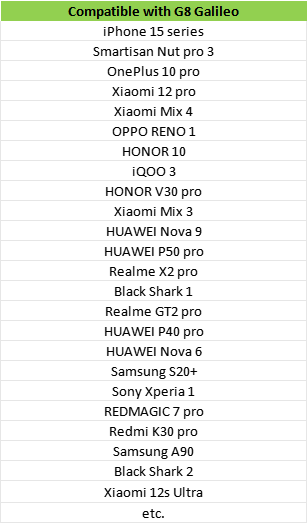 Below is a brief list of tested compatible & incompatible phones as a quick reference. Please be noted that the list isn’t exhaustive due to numerous phones in the market and our limited ability to test all phones. Other phones may or may not work with G8 Galileo.